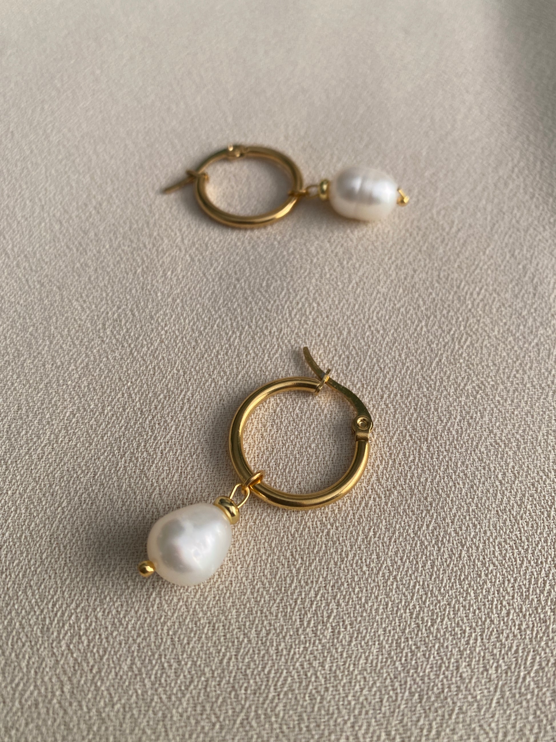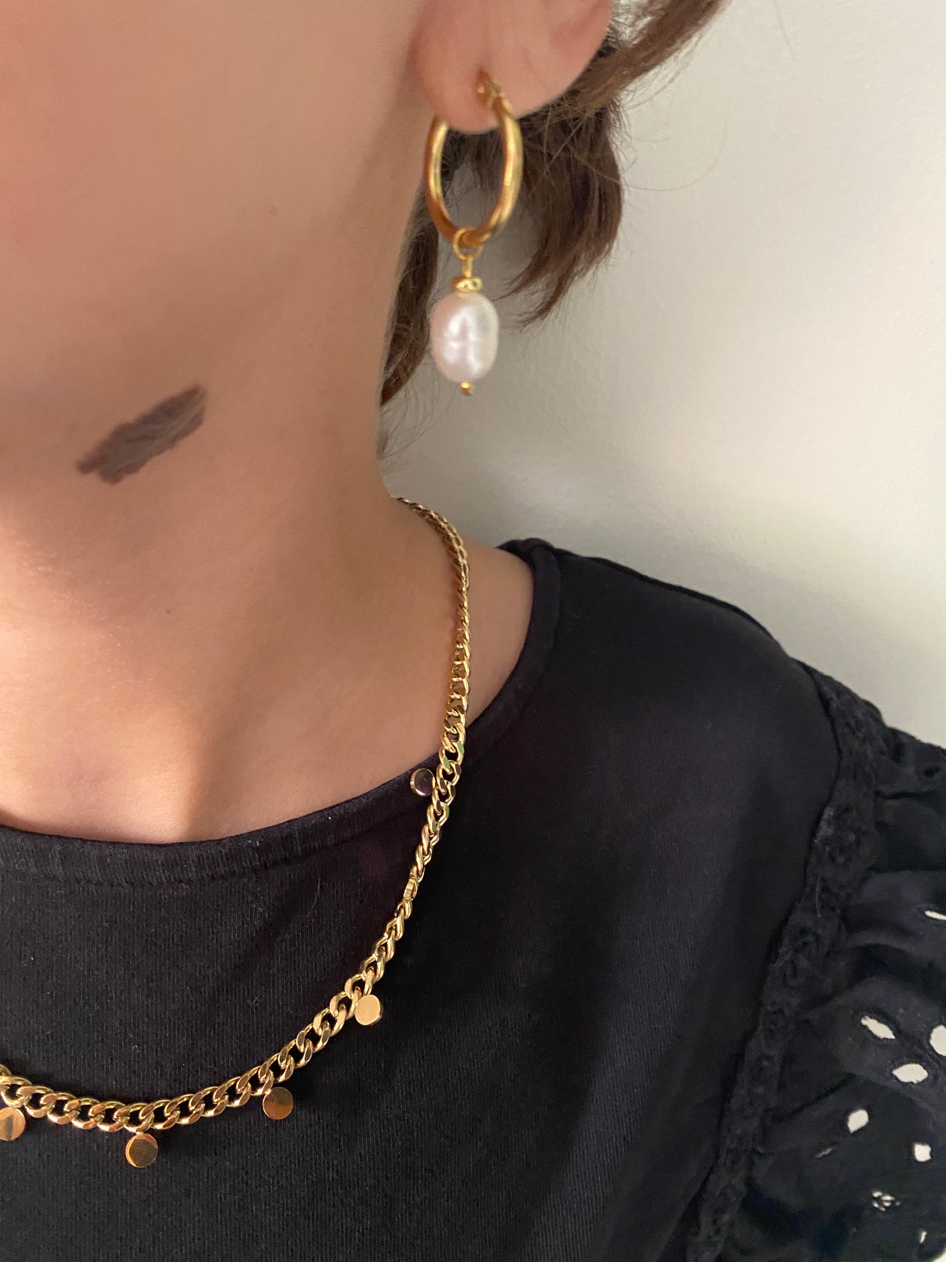 Jolie petite créole avec perle naturel d'eau douce pendantes.