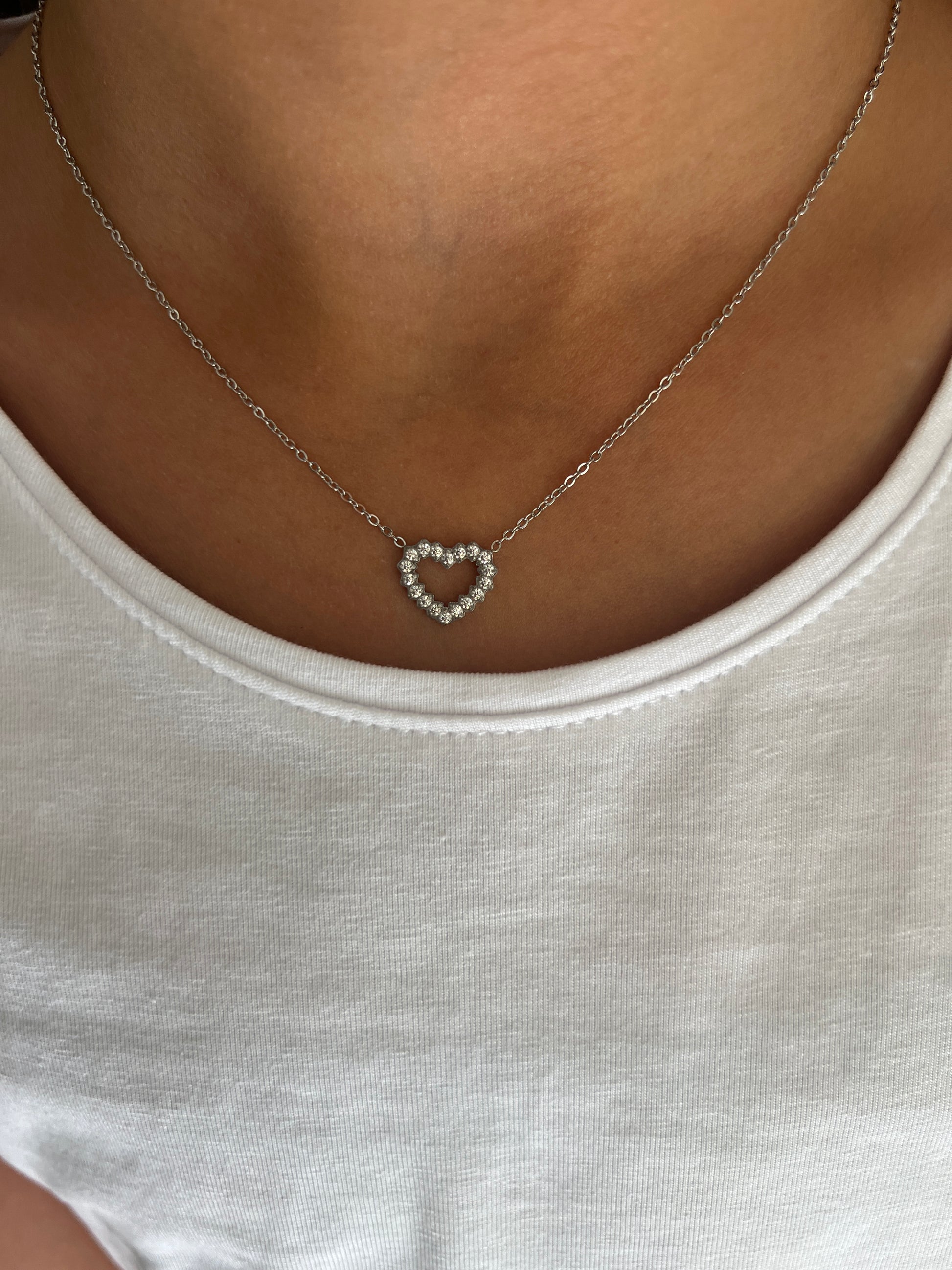 Jolie petite chaine en acier avec pendentif coeur sertie de strass en zirconium.